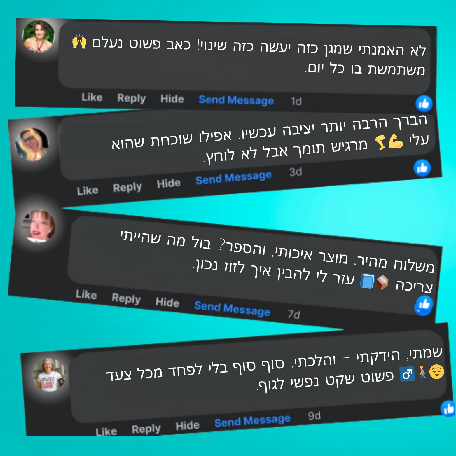 ממש הופתעתי לטובה. החומר נעים, התמיכה מורגשת, וזה פשוט עובד!