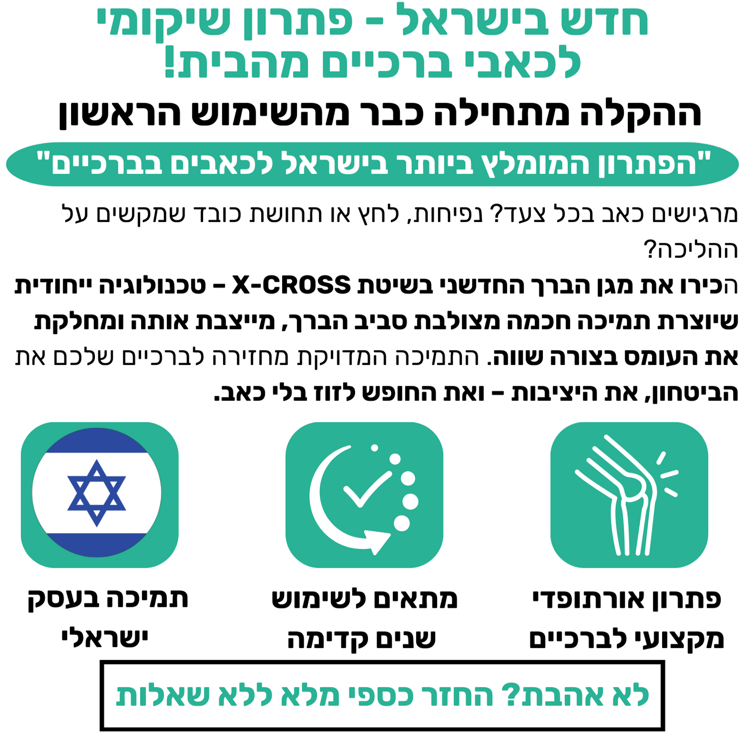 כבר אחרי יומיים הרגשתי שינוי! הברך הרבה יותר יציבה ואני מצליחה ללכת בלי לחשוב על הכאב 🙌