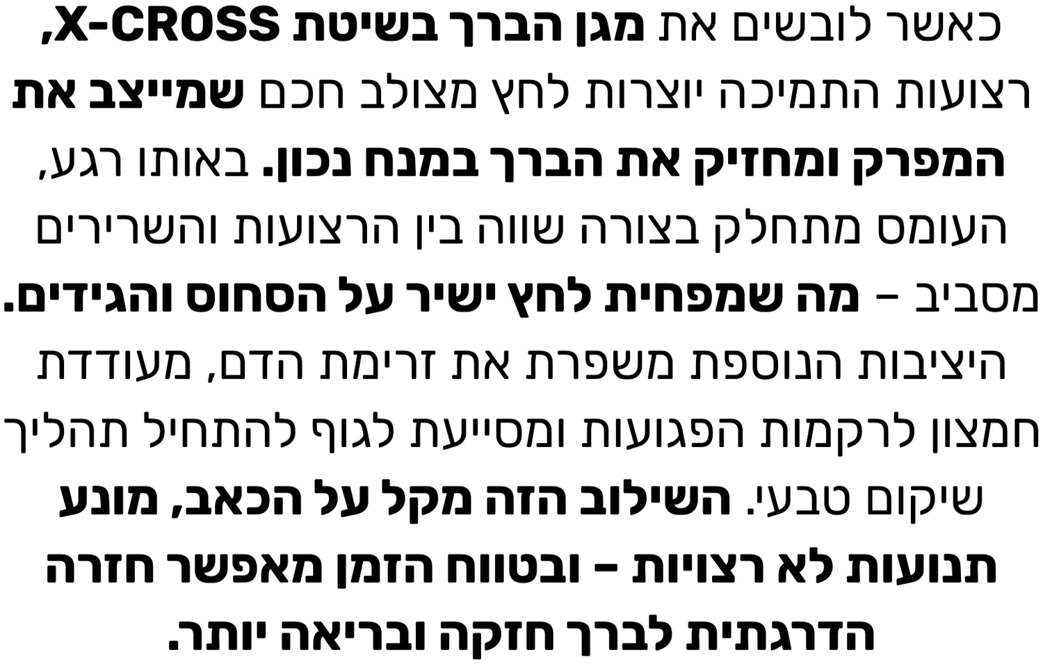 המגן לא רק "מעלים" כאב זמנית – הוא מפחית עומס, מייצב את המפרק, ובעזרת הספר המצורף – גם מוביל לשיפור בתפקוד לאורך זמן.