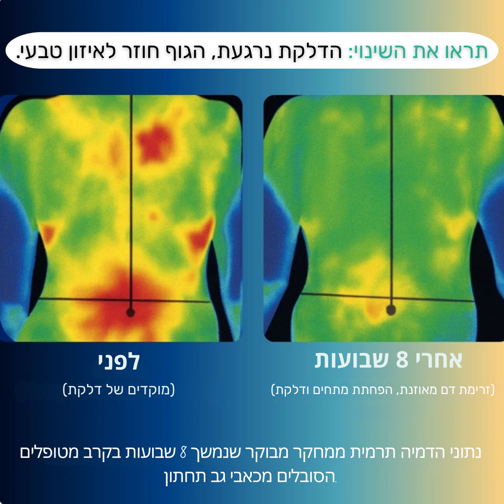 החום העדין מרחיב את כלי הדם, משפר את זרימת החמצן ומסייע לגוף להיפטר מדלקות ומתח שרירי.