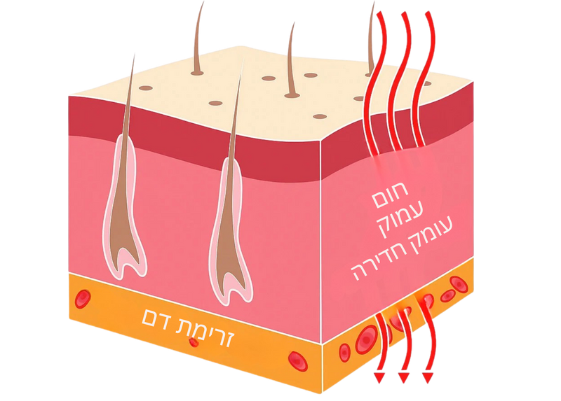 החום העדין מרחיב את כלי הדם, משחרר שרירים מתוחים ומשפר את גמישות הרקמות.